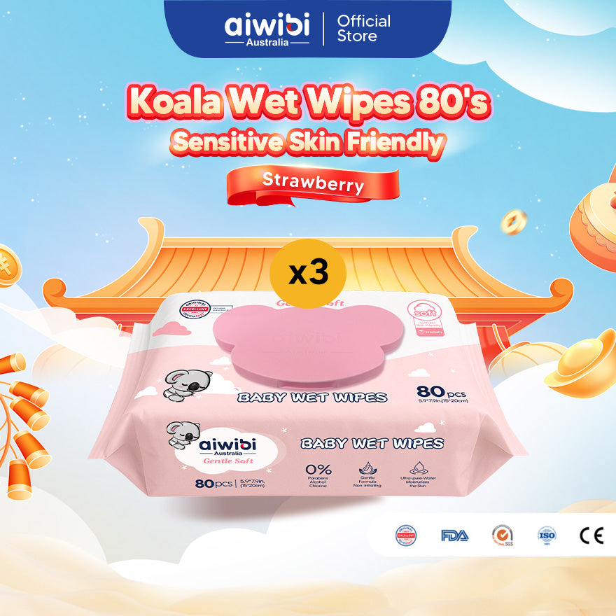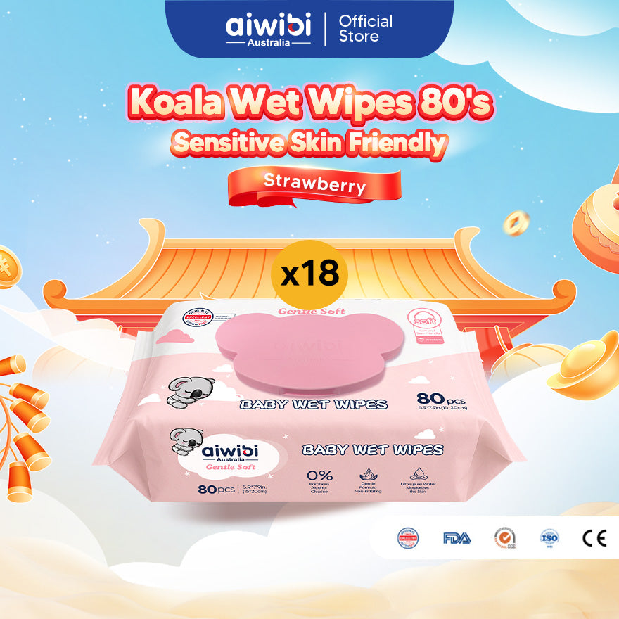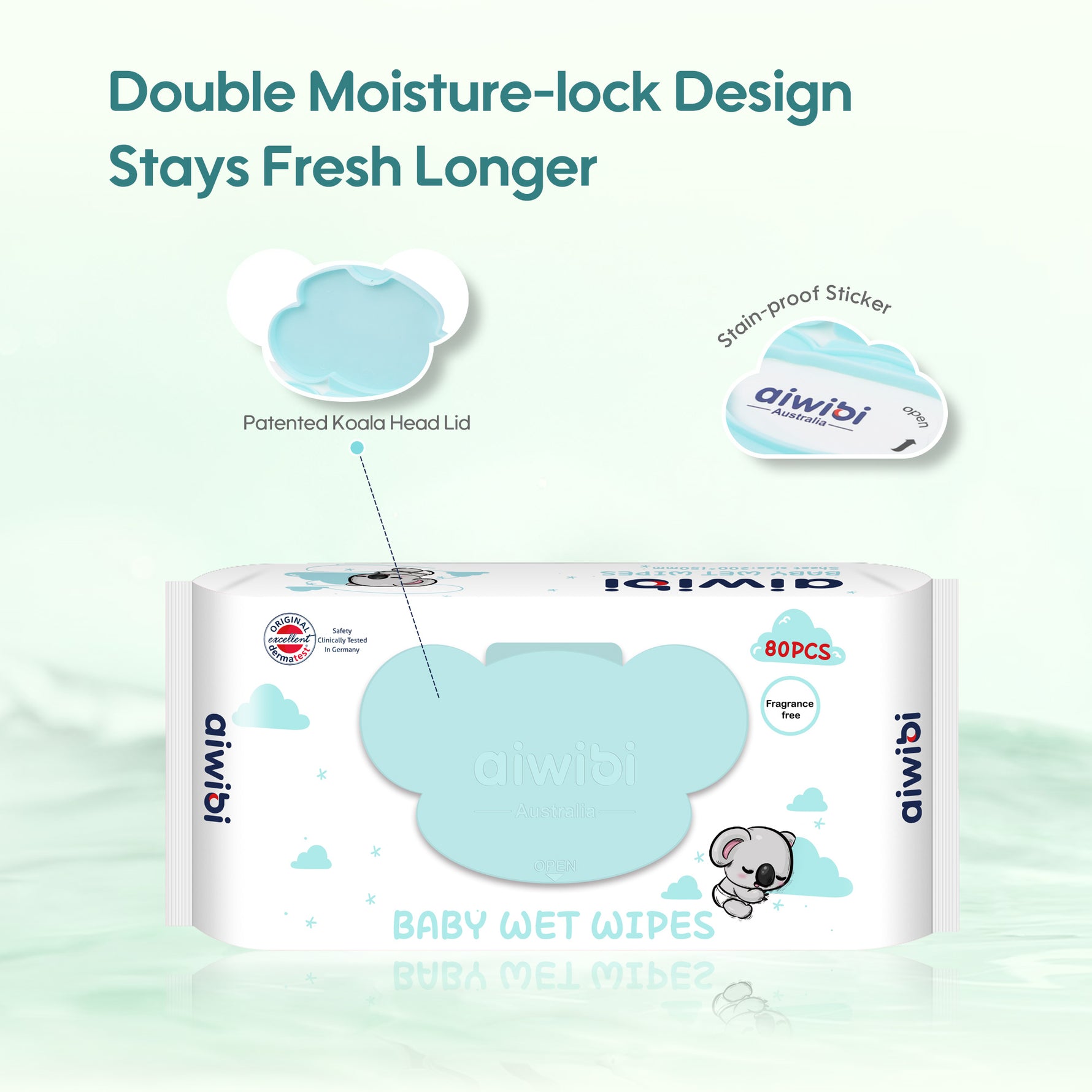 Aiwibi Gentle Soft Baby Wet Wipes 80 Pcs (Koala Lid)
