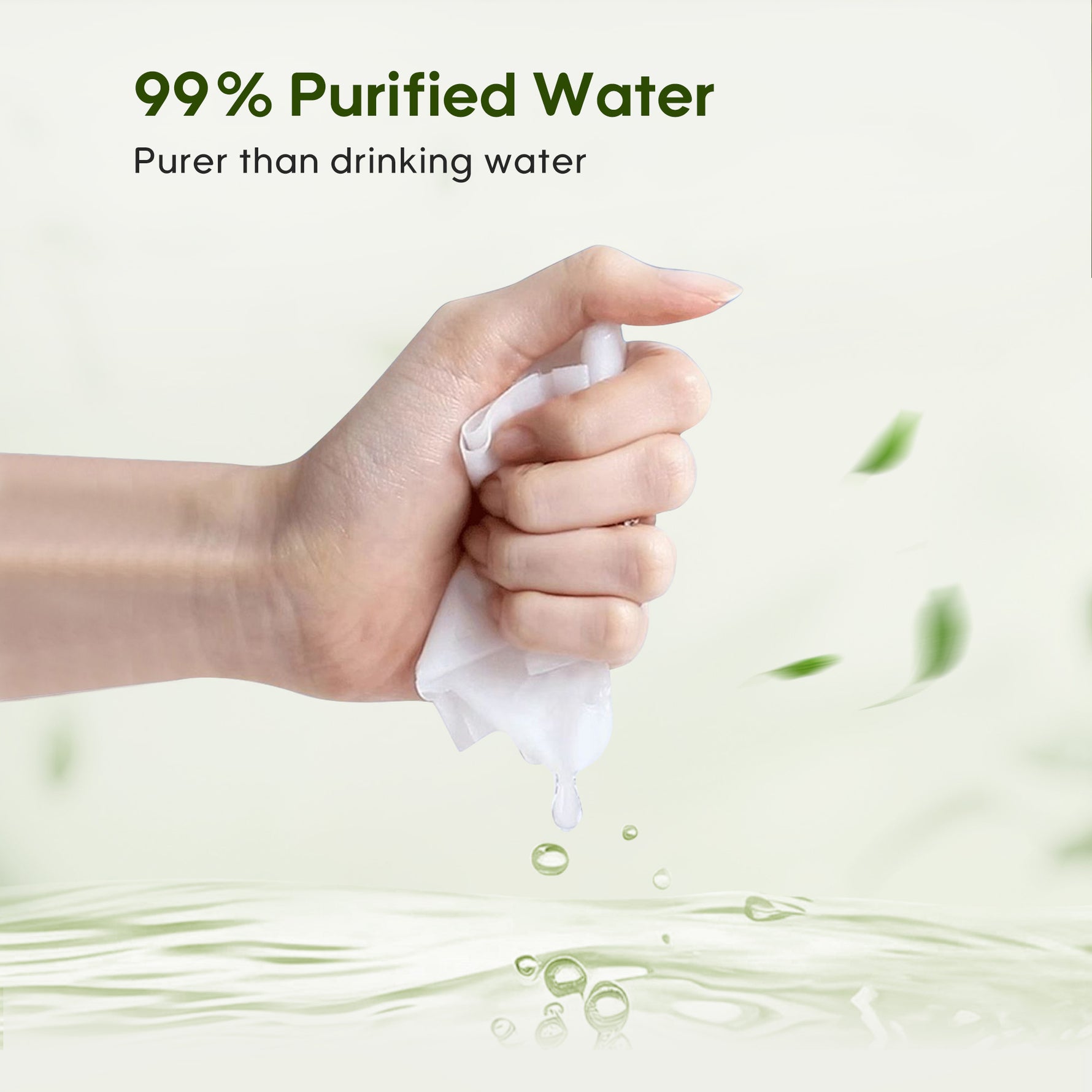 Designed for on-the-go convenience, blending 99% pure EDl water with a soft, non-woven fabric for a safe, one-wipe clean.