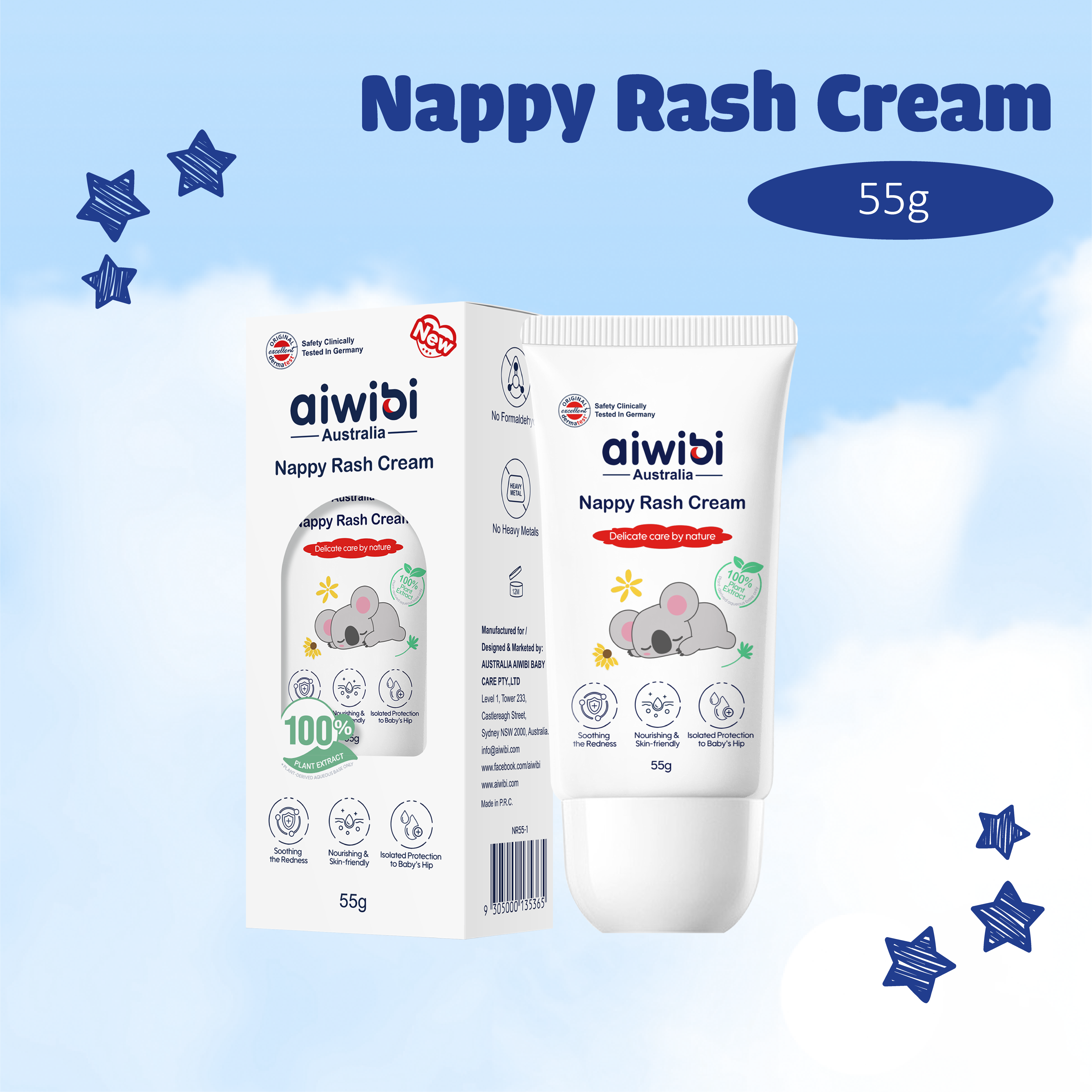 Zinc oxide and natural plant extracts, help moisturize and soothe baby's skin, effectively preventing baby rashes and red butt issues.