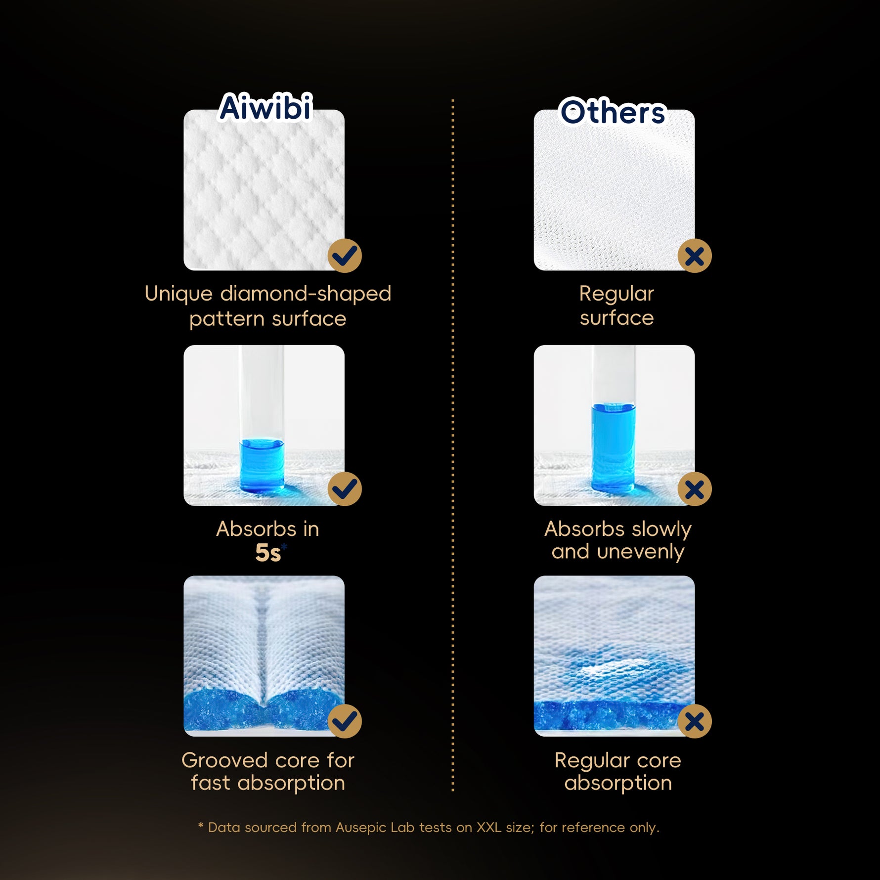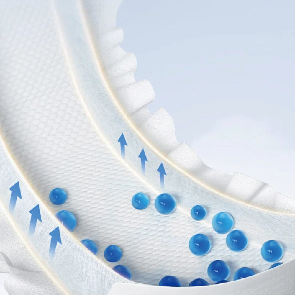 Features top-brand SAP (Super Absorbent Polymer) wrapped in absorbent paper for maximum retention.