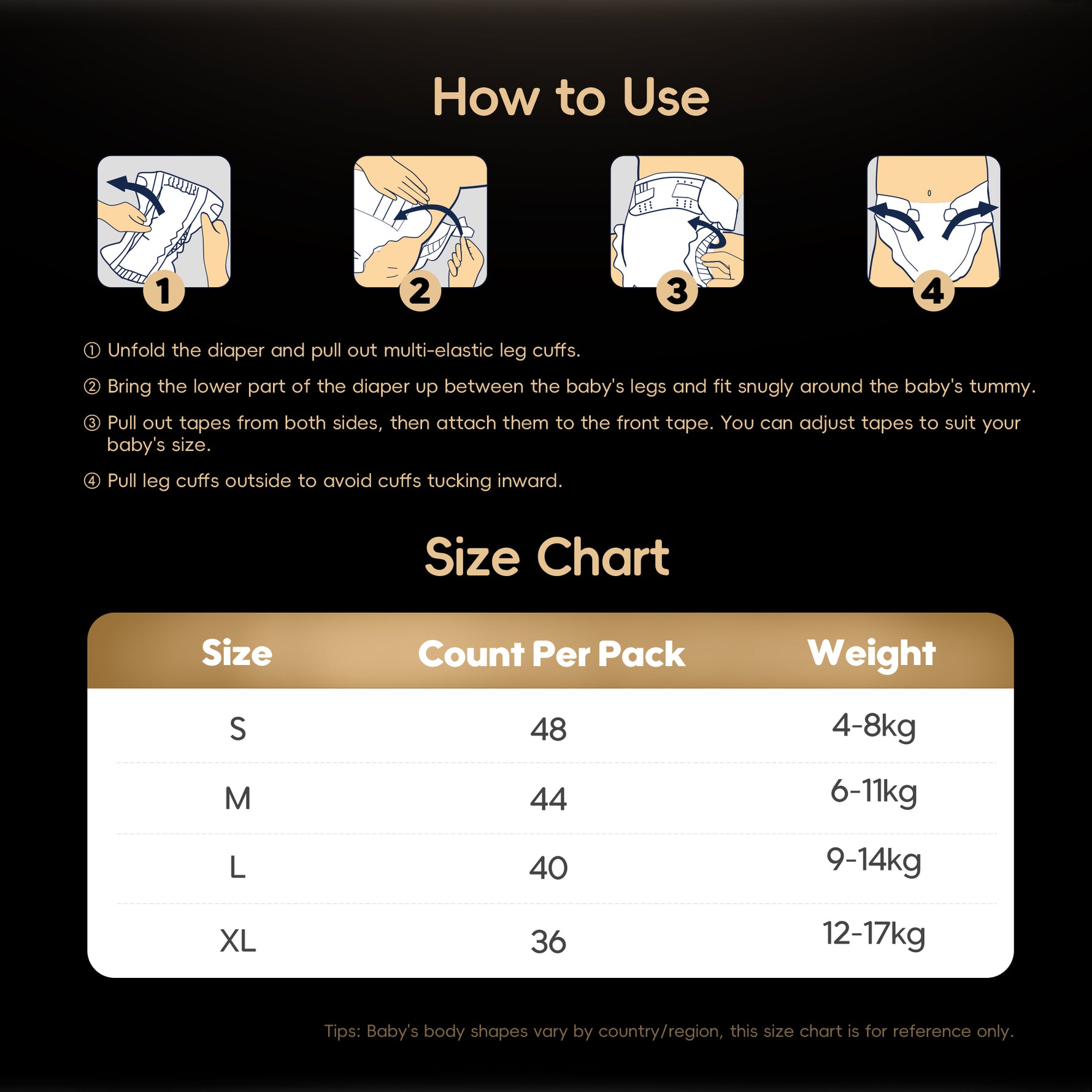Tape Diapers Size Chart