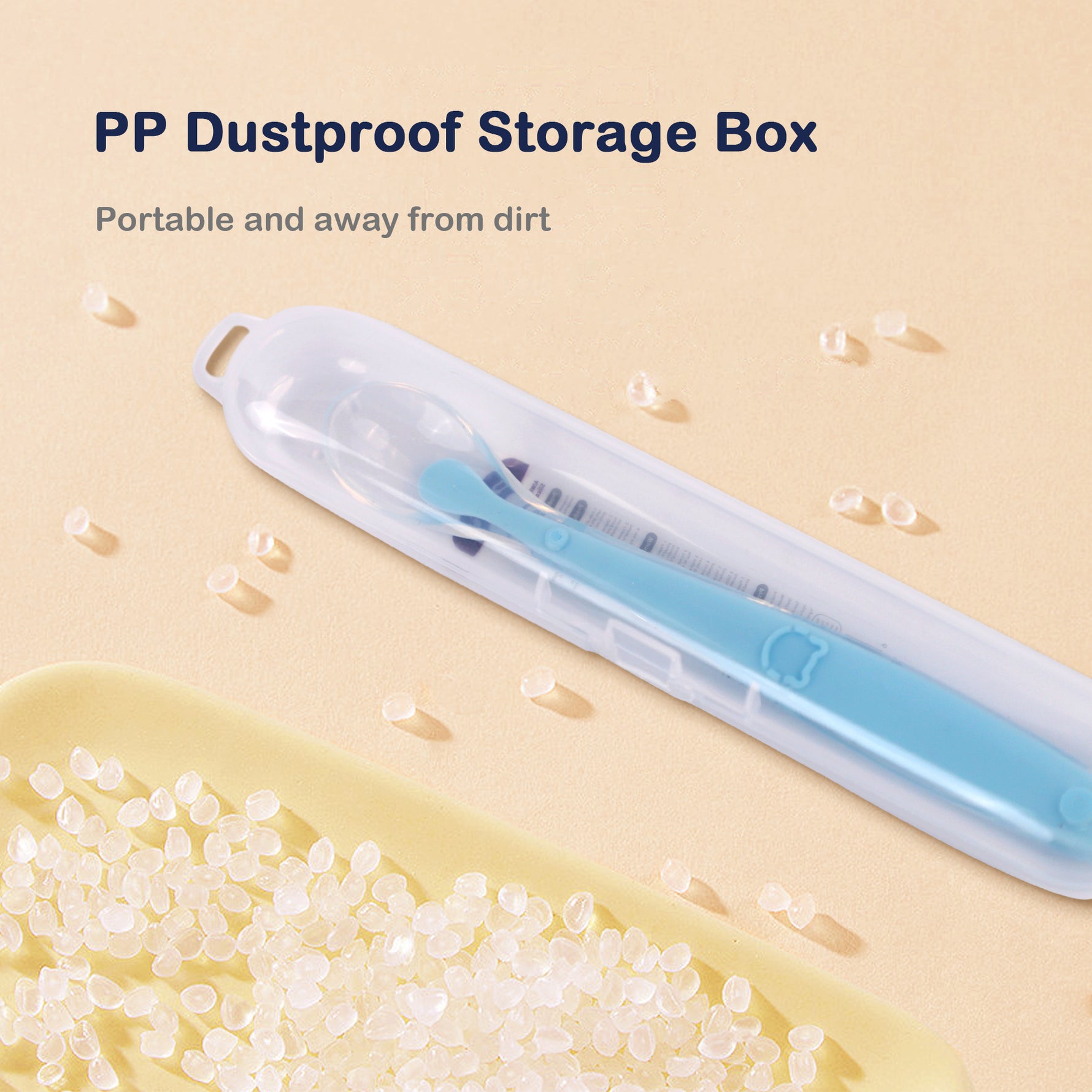 The spoon can be easily stored in any dry, clean space, such as a kitchen drawer or a dedicated baby feeding area. For hygiene purposes, keep it away from direct sunlight or excessive heat.