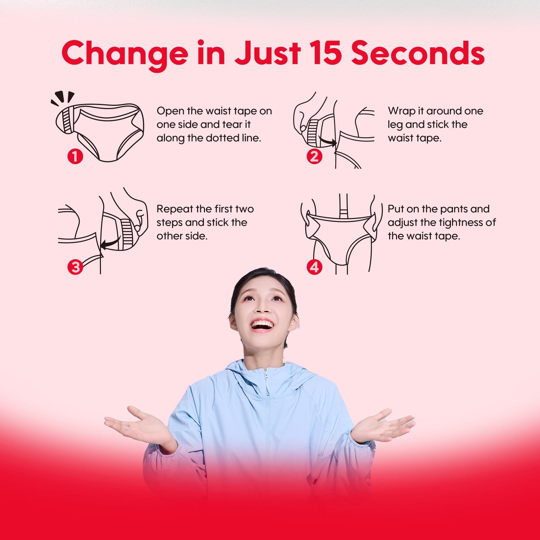 Tear, stick, wear — three simple steps, no need to remove outerwear.